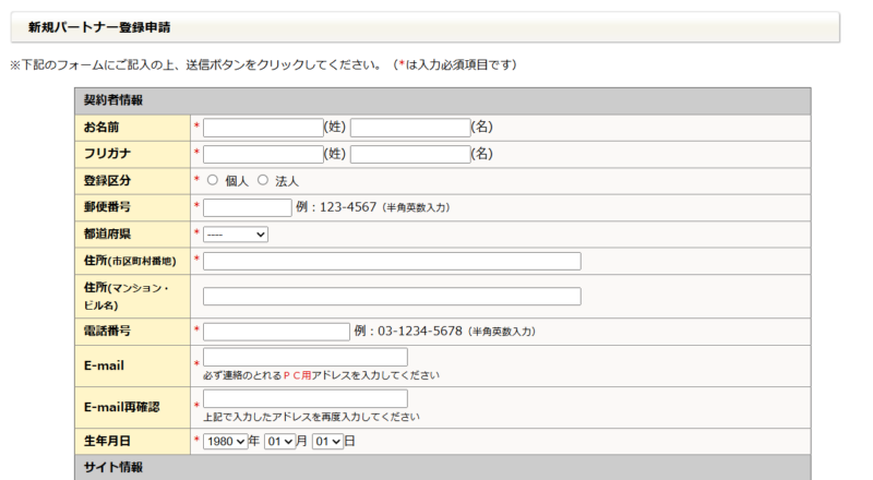 ② 『新規パートナー登録申請』 こちらから必要内容を入力していきます。